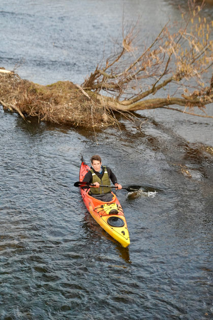 Over het algemeen staat er een stevige stroming op de Semois. Maar op sommige stukken staat het water erg laag en dus moet Thomas zich regelmatig over de bodem duwen of noodgedwongen uitstappen met natte voeten tot gevolg. Er zijn ook verrassend veel omgevallen bomen of takken die stukken versperren. Al deze obstakels vertragen de voortgang en het is dan ook pas na valavond dat hij nat en moe de eindbestemming bereikt.